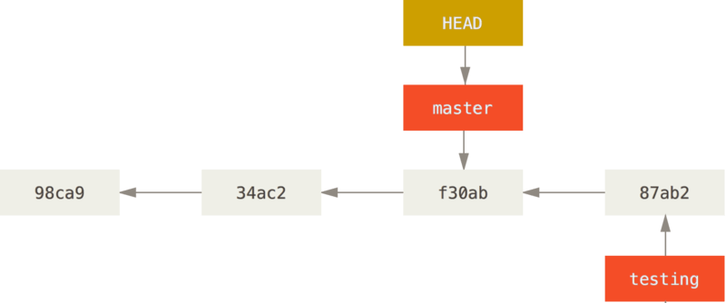 এটি HEAD কে নিয়ে testing ব্রাঞ্চের দিকে নির্দেশ করে।