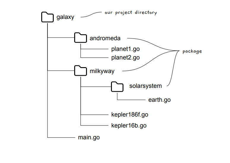 প্যাকেজ তৈরি করার জন্য আমরা আমাদের প্রজেক্ট ডিরেক্টরীতে একটি ফোল্ডার তৈরি করব এবং ফোল্ডারের ভেতরে Go ফাইলে কোড লিখব। এই ফোল্ডারের মধ্যে সকল Go ফাইলের প্রথমে  package লিখে এর পরে ফোল্ডারের নামটি লিখতে হবে কারণ বাইডিফল্ট ফোল্ডারের নামই প্যাকেজের নাম হয় । এরপর সেখানে আমরা আমাদের প্রয়োজনমতো কোড লিখতে পারি । আমরা চাইলে প্যাকেজের  মধ্যেও প্যাকেজ বানাতে পারি ।