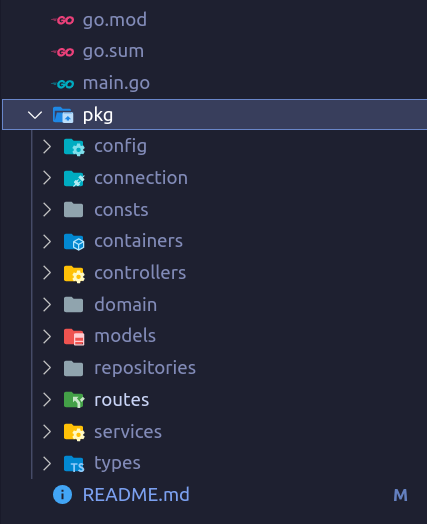 pkg ফোল্ডারের ভেতরে আমাদের সকল ফোল্ডার থাকবে। প্রত্যেক ফোল্ডারের কোডের কাজ কি হবে তা নিচে হালকা ব্যাখ্যা দেয়া হলো :