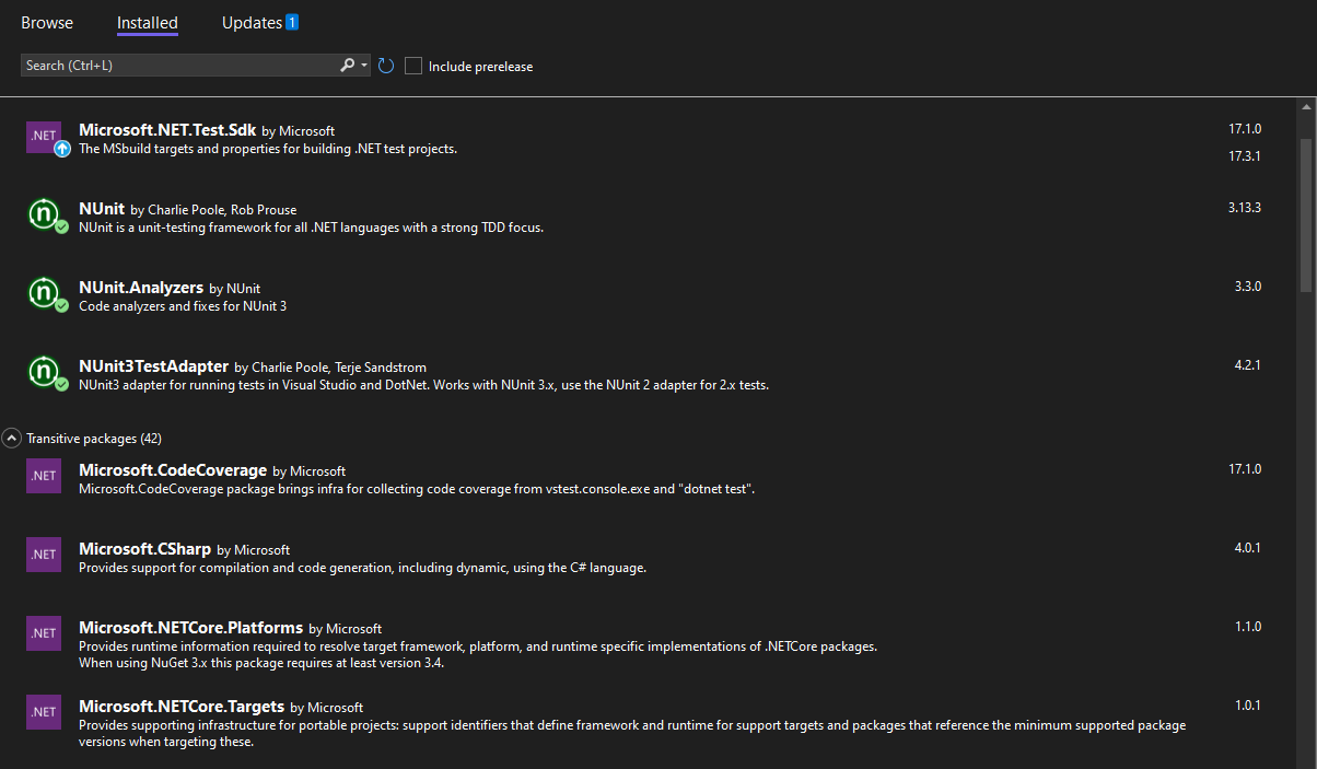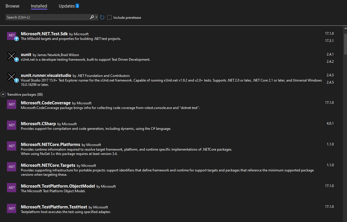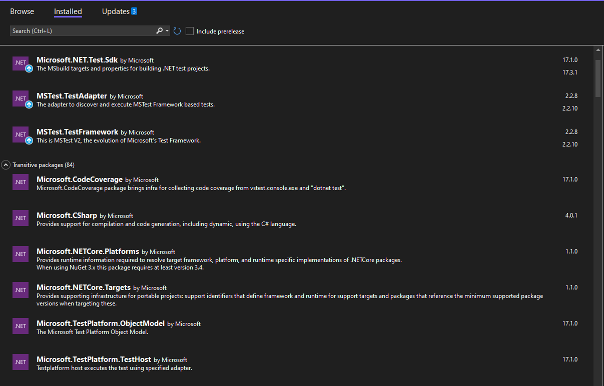 • MSTest: MSTest is the default test framework that comes along with Visual Studio.  The MSTest framework provides the necessary tools to verify & validate your source code. The framework recognizes tests via the different attributes/annotations under which the test code is present.